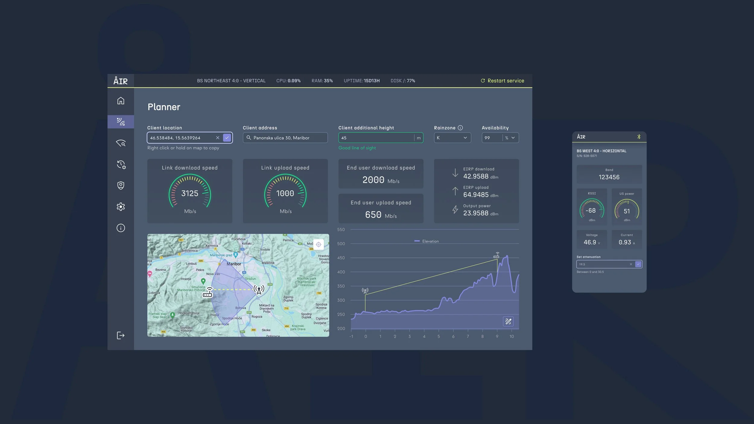 The application supports field technicians when they are setting up transceivers and base stations on high altitudes, so it needs to be powerful enough to facilitate the whole setup and configuration process, yet light enough to be usable in the field.