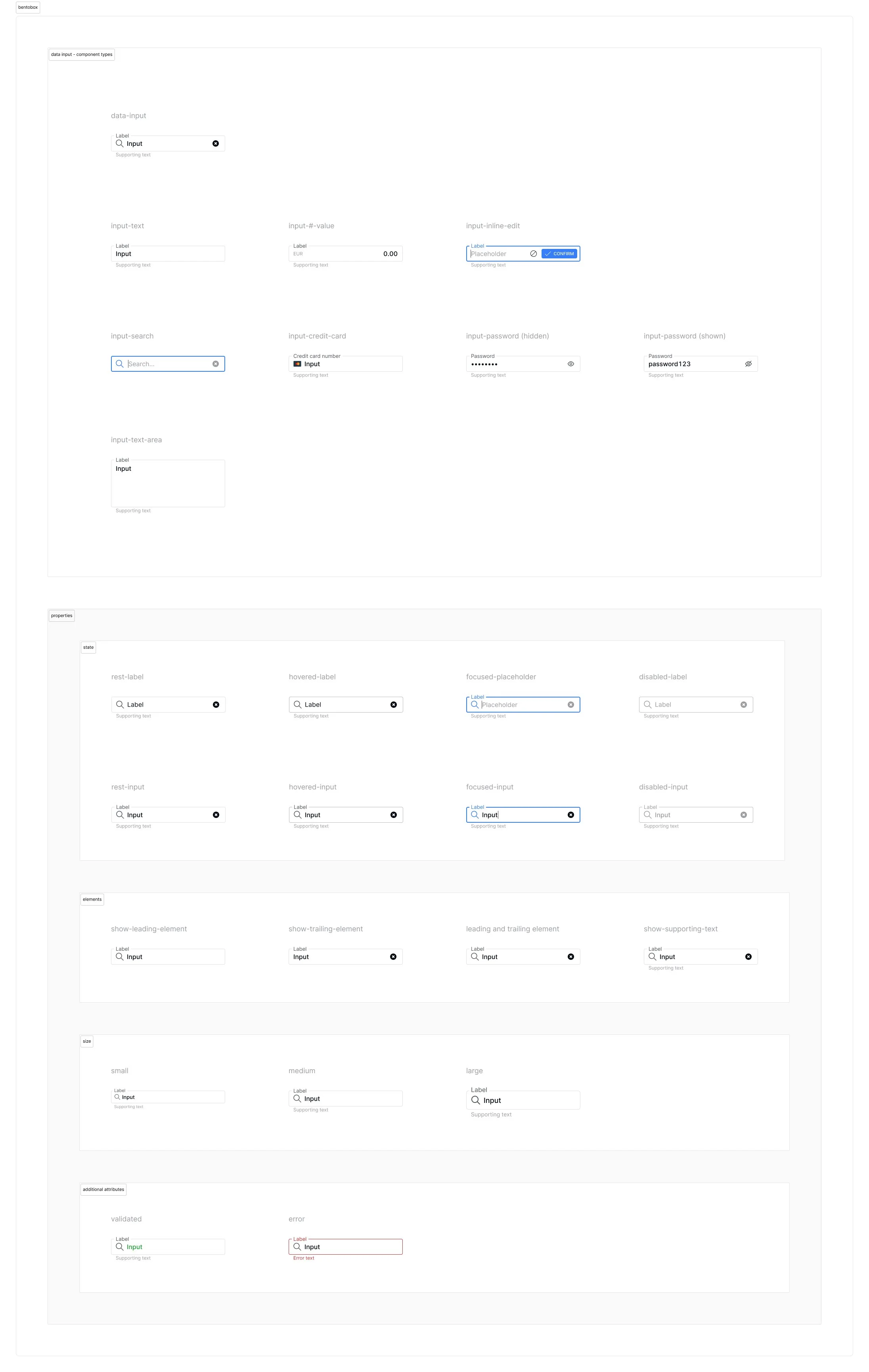 We decided that every component in the DS would be accompanied by a bento box-style presentation of all of its variants and properties. This not only helps inform designers what can be achieved with a particular component, but it is also an excellent alternative to Figma’s ‘peephole’ native experience of searching for assets.